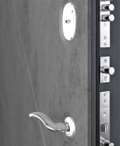 Защита: 3 противосъемных ригеля, врезная броненакладка для защиты цилиндра от выбивания и высверливания.