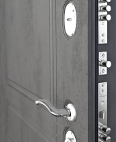 Защита: 3 противосъемных ригеля, врезная броненакладка для защиты цилиндра от выбивания и высверливания.