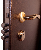 Защита: 3 противосъемных ригеля, врезная броненакладка для защиты цилиндра от выбивания и высверливания.